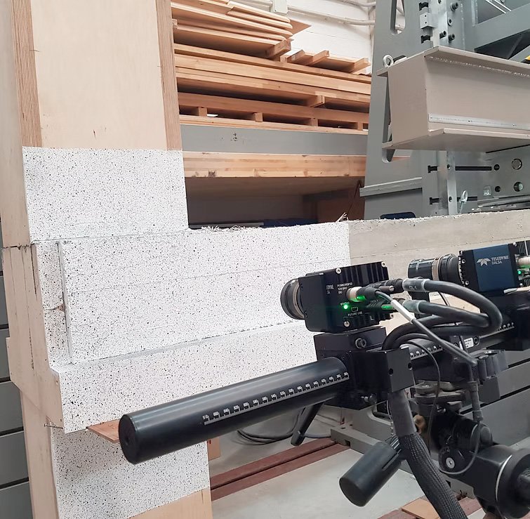 The DIC technique is a full-field optical method that enables the measurement of displacements and strains. For its practical application, the PEMADE laboratory is equipped with the non-contact 3D optical measurement system ARAMIS – 3D Motion and Deformation Sensor.